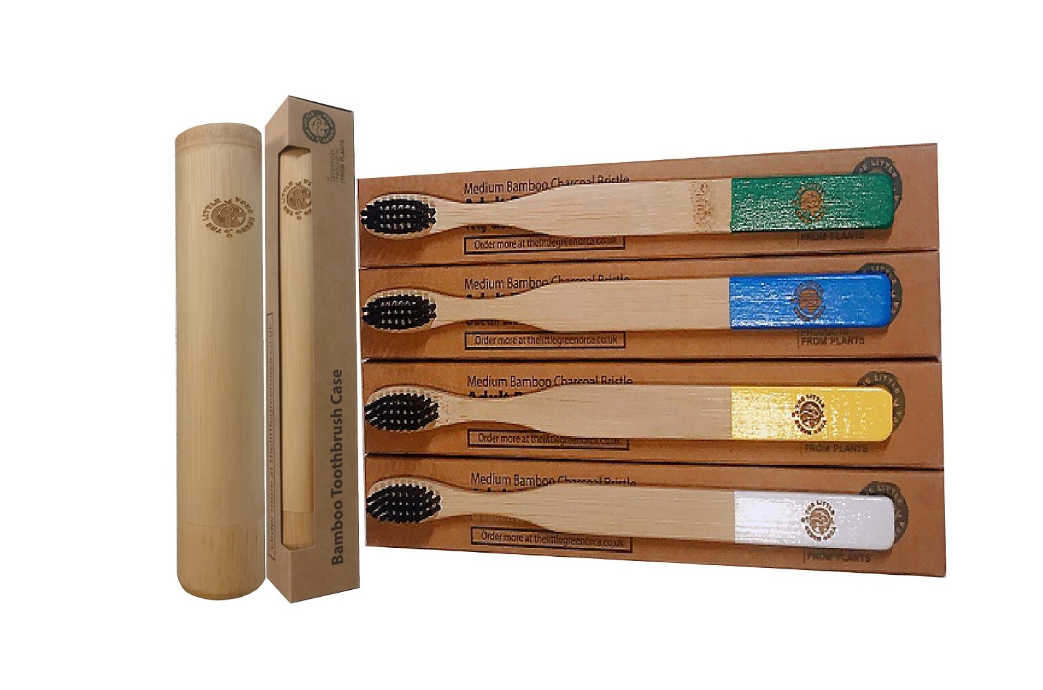 The 4 Colourful Eco-Friendly Bamboo Toothbrushes & 1 Toothbrush Travel Case Gift Box - Easy-Grip Handle, Bamboo Charcoal Infused Bristles is shown in Bamboo Toiletries , Bamboo Oral Care , Bamboo Gift Box , All Products , Eco-Friendly Value Packs.