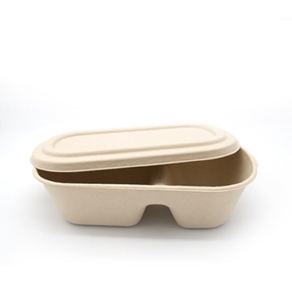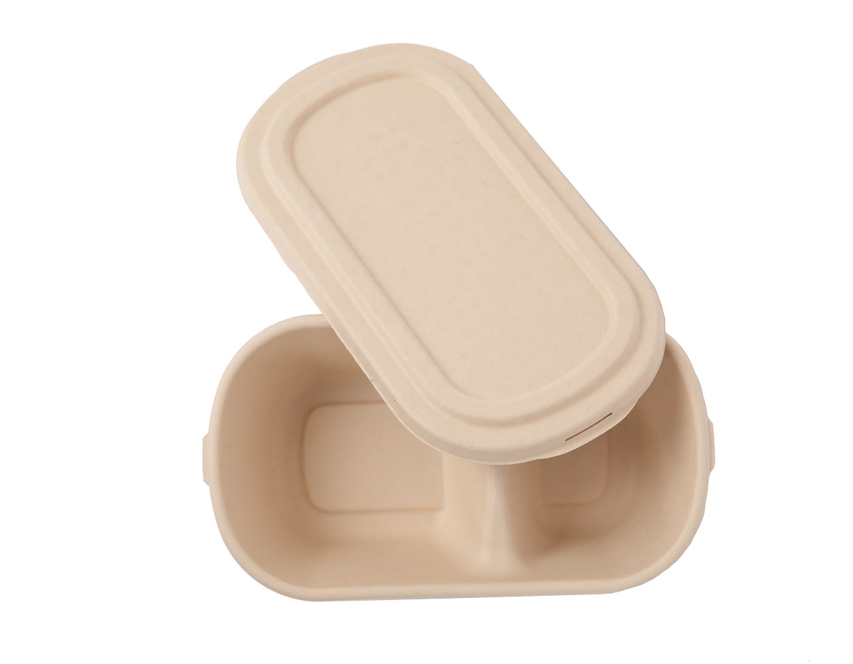 The Eco-Friendly Disposable Extra Strong Microwavable Bamboo Fibre 2 Compartments Food Container & Lid 1100ml / 37oz- 20 pcs is shown in Bamboo Tableware , All Products.